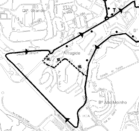 A carreira 754, sentido Campo Pequeno, circula via EN 117. No sentido Alfragide, pode existir condicionamento pontual.