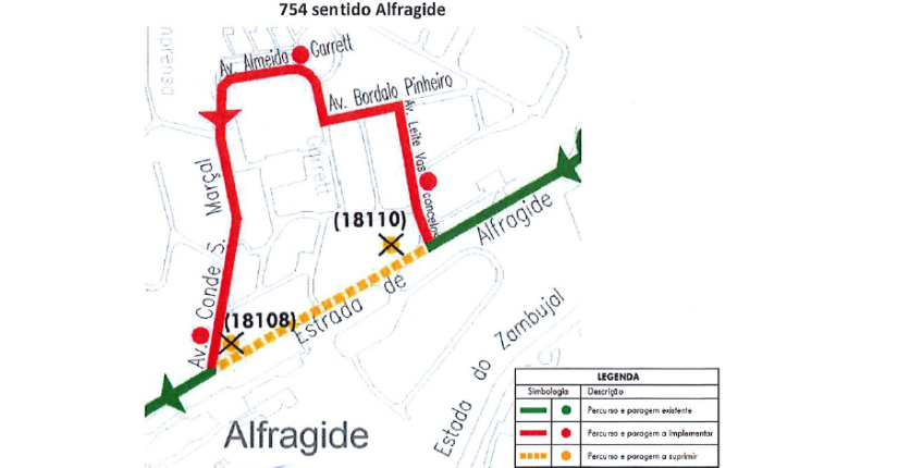 Entre o dia 11 de março de 2025 (3.ª feira) e o dia 25 de abril de 2025 (6.ª feira), a carreira 754 tem as seguintes alterações: