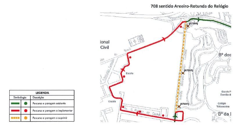 A partir do dia 11 de março de 2025 (3.ª feira), até ao dia 13 de março de 2025 (5.ª feira), a carreira 708 tem as seguintes alterações de percurso: