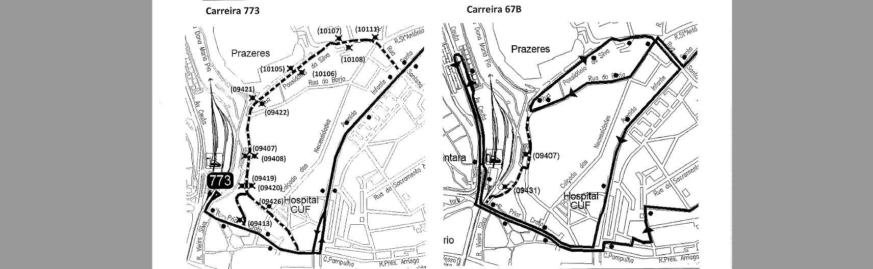 - em ambos sentidos, via Av. Infante Santo e R. Prior Crato;