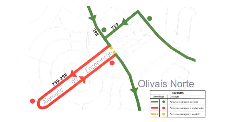 Entre os dias 24 de abril de 2024 (4ª feira) e 6 de maio de 2024 (2ª feira), as carreiras 759 e 29B, têm a seguinte alteração no percurso: