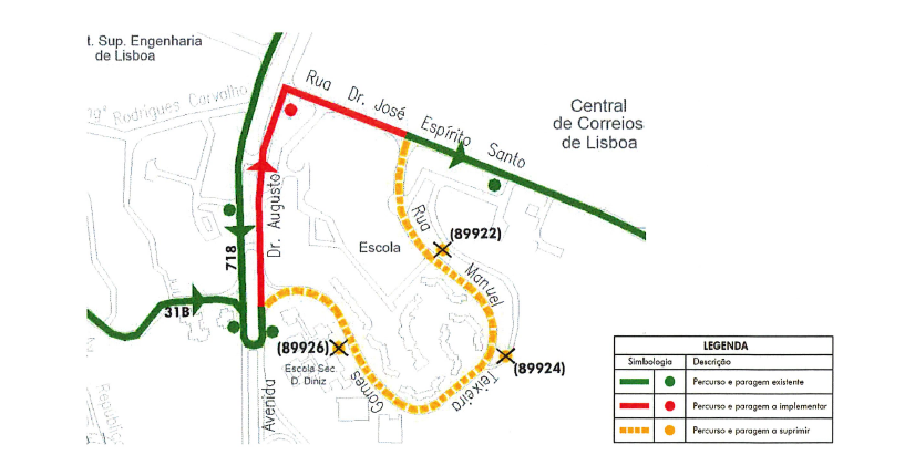 No dia 4 de abril de 2025 (6.ª feira), entre as 8h e as 18h, as carreiras 718 e 31B têm as seguintes alterações no percurso: