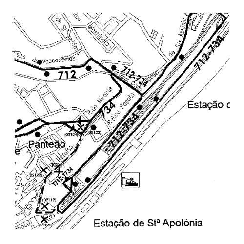 712 - circula, a partir da R. Diogo Couto, via Cç. Sta. Apolónia, Av. Mouzinho Albuquerque, Av. Infante Dom Henrique, R. Teixeira Lopes e Lg. Caminhos Ferro onde efetua o seu terminal seguindo via R. Caminhos Ferro e R. Diogo Couto, onde retoma o seu percurso.