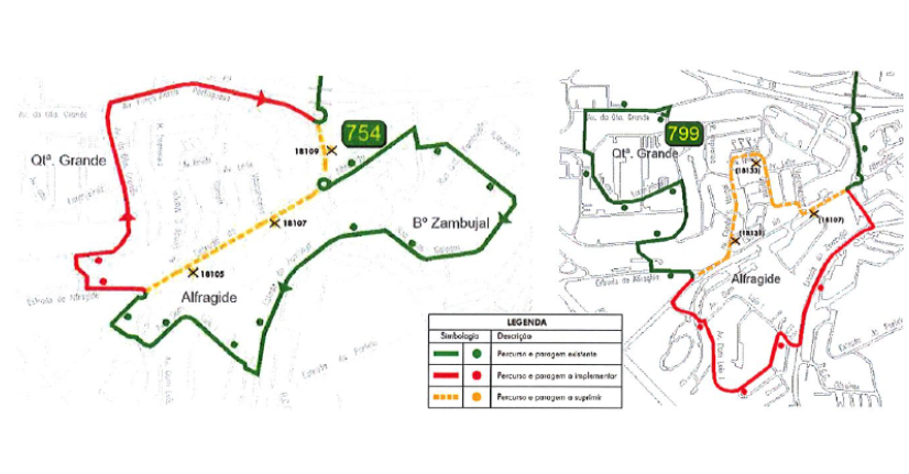 Entre o dia 7 de maio de 2025 (4.ª feira) e o dia 28 de maio de 2025 (4.ª feira), as carreiras 754 e 799 têm as seguintes alterações no percurso: