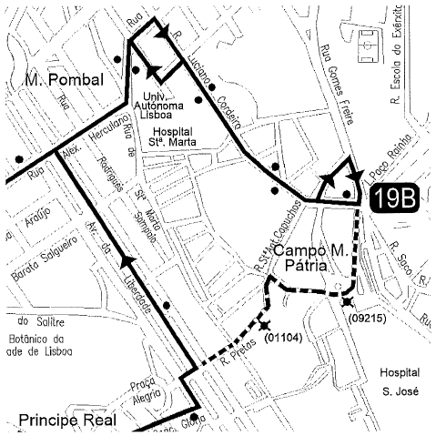Nos dias 11 e 18 de junho (sáb), entre as 8h e as 20h, a 19B circula, a partir da R. Conceição Glória, via Av. Liberdade, R. Alexandre Herculano, R. Conde Redondo, R. Luciano Cordeiro, Alameda Santo António Capuchos e Campo Mártires Pátria, onde inverte e efetua terminal.