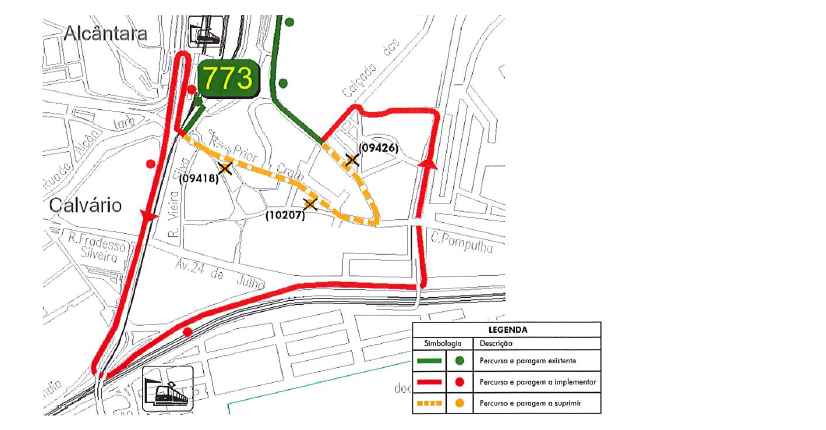 A partir do dia 27 de maio de 2025 (3.ª feira), a carreira 773 terá as seguintes alterações no percurso: