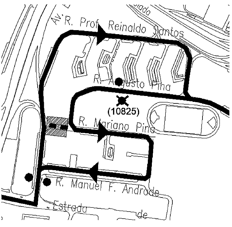 - sentido Alfragide, via R. Augusto Pina, R. Mariano Pina, R. Manuel Ferreira de Andrade e R. Prof. Reinaldo Santos.