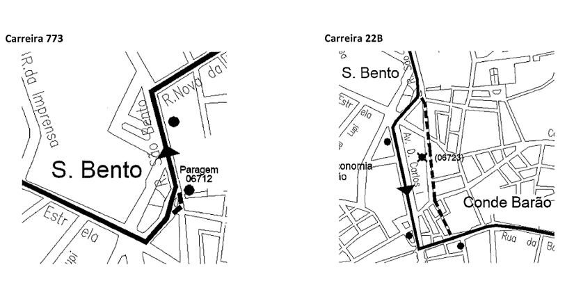 22B | circula, a partir da R. São Bento, via R. Correia Garção, Av. D. Carlos I, Cç. Marquês Abrantes e R. da Boavista.