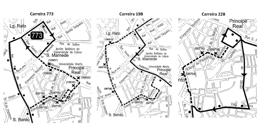 19B | circula, a partir da R. Alexandre Herculano, via R. Rodrigo Fonseca, R. Nova São Mamede, R. Escola Politécnica e Príncipe Real, onde retoma o seu percurso.