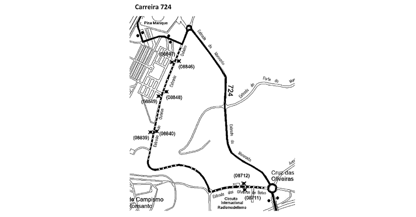 724 | circula, entre o B.º Boavista e a rotunda Cruz Oliveiras, via Estrada Monsanto (percurso da 729) em ambos os sentidos.