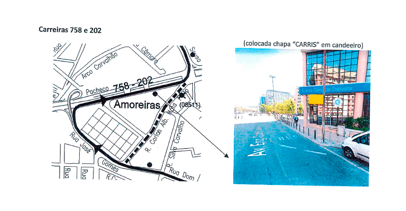 Será colocada uma paragem provisória na Av. Eng. Duarte Pacheco junto ao C. C. Amoreiras.