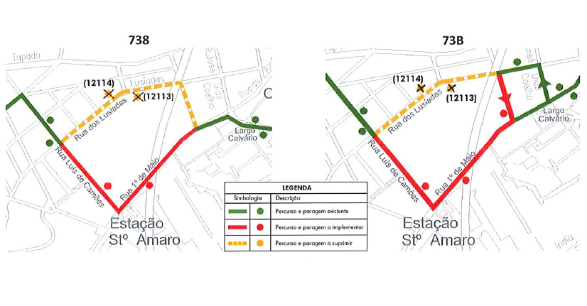 No dia 21 de junho de 2025 (sábado), entre as 7h e as 19h, as carreiras 738 e 73B terão as seguintes alterações no percurso: