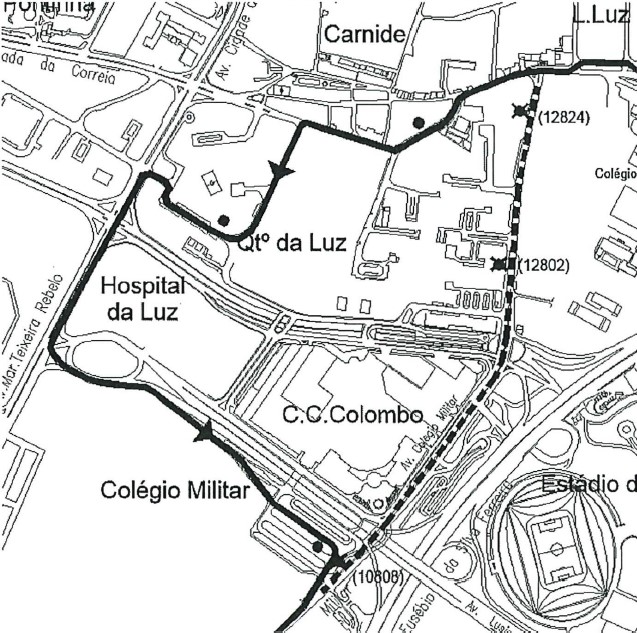 Entre as 22h do dia 21 de julho (5ªf) e as 2h do dia 22 de julho (6ªf), as carreiras 703 e 767 circulam a partir do Lg. Luz, via R. Fonte, Lg. Jogo da Bola, R. Guiomar Torresão, Av. Marechal Teixeira Rebelo, Av. Lusíada, Lg. Revista Militar e Av. Colégio Militar onde retomam os seus percursos, conforme esquema.