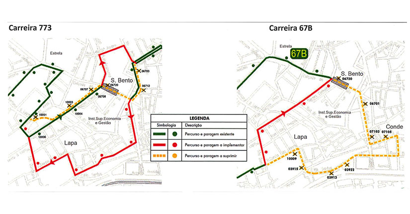 A partir do dia 16 de setembro (2.ª feira), as carreiras 773 e 67B têm alterações de serviço devido à nova fase de obras na Calçada da Estrela (circulação viária impedida entre a R. Miguel Lupi e a R. Borges Carneiro).