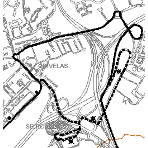 A carreira 736, destino Odivelas, circula via R. Açores, R. Heróis de Chaimite, N8 e R. Augusto Alexandre Jorge onde retoma o percurso atual.