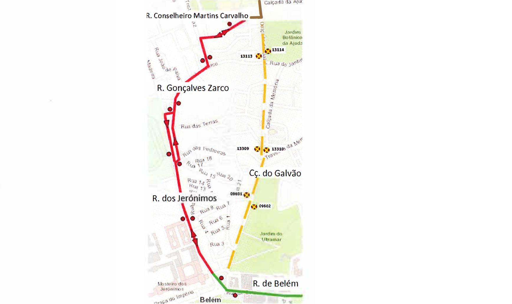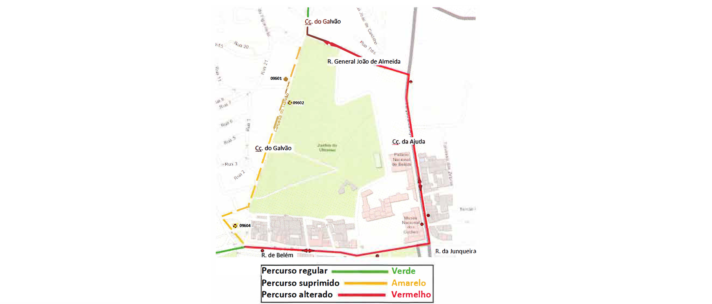 79B | circula, a partir da Praça do Império, via R. de Belém, Cç. da Ajuda, R. General João de Almeida e Cç. do Galvão, onde retoma percurso.