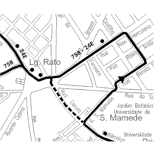 - Circulação de autocarros mini com alteração do percurso, no sentido Campolide, via R. Escola Politécnica, R. Nova de S. Mamede, R. Rodrigo da Fonseca, R. Barata Salgueiro, R. Mouzinho da Silveira, R. Alexandre Herculano e Rato, onde retoma o percurso.