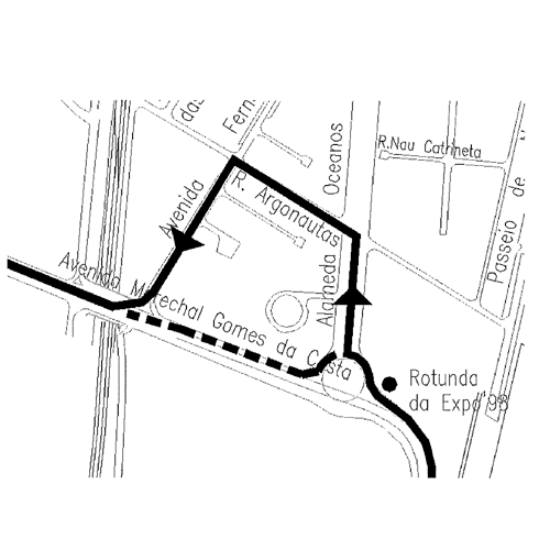 As carreiras 781 e 210, sentido Prior Velho, circulam via R. Cintura Porto de Lisboa, Rotunda Expo 98, Alameda Oceanos, R. Argonautas, Av. Fernando Pessoa e Av. Marechal Gomes Costa.