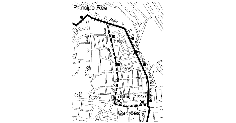 A partir de 30 de outubro (2.ª feira), a carreira 22B circula a partir da R. do Alecrim, via R. da Misericórdia, R. São Pedro Alcântara e R. Dom Pedro V, onde retoma percurso, conforme esquema seguinte.