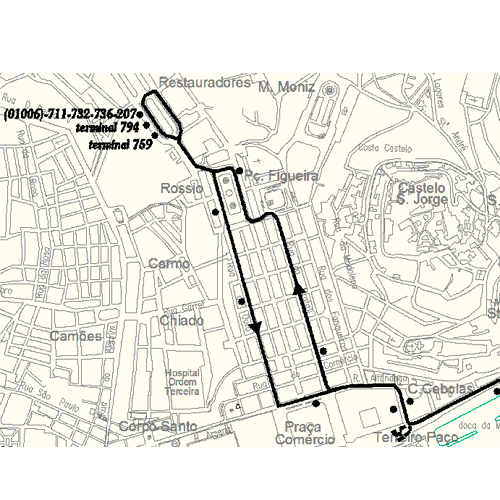 As restantes carreiras com passagem nos Restauradores, sentido Rossio, recuam para o primeiro ponto de paragem aí existente.