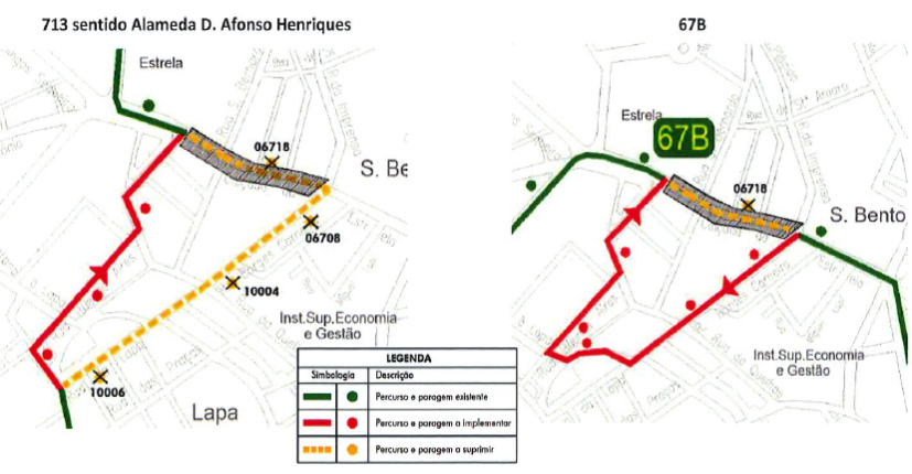 A partir do dia 15 de janeiro de 2025 (4.ª feira), as carreiras 713 e 67B têm as seguintes alterações no percurso: