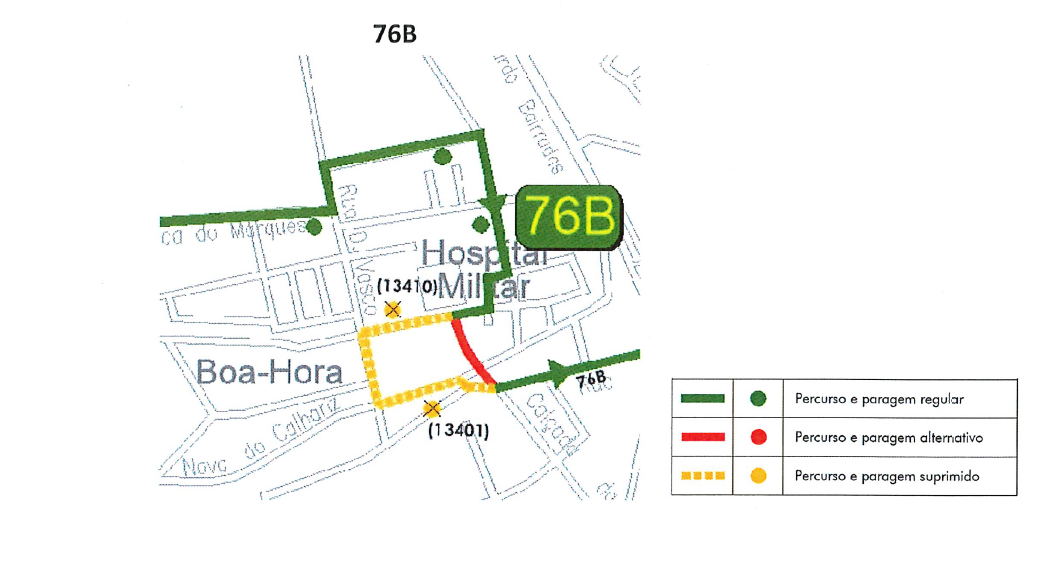76B (a partir do Lg. Boa-Hora à Ajuda) | circula via Calçada da Boa-Hora e R. Aliança Operária, onde retoma o seu percurso.