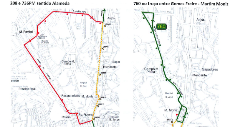 A partir do dia 19 de março de 2025 (4.ª feira), às 8h, até ao dia 28 de março de 2025 (6.ª feira), às 20h, as carreiras 760, 208 e 736PM têm as seguintes alterações no percurso: