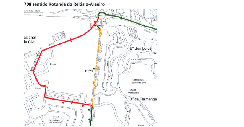 A partir do dia 11 de março de 2025 (3.ª feira), até ao dia 13 de março de 2025 (5.ª feira), a carreira 708 tem as seguintes alterações de percurso:
