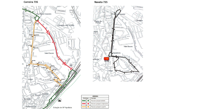 A partir do dia 8 de abril de 2025 (3.ª feira), a carreira 735 tem as seguintes alterações no percurso: