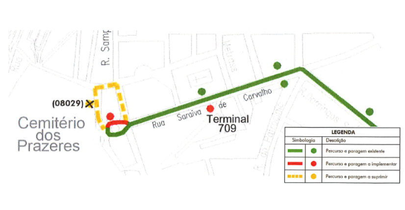 - R. Saraiva Carvalho onde retoma o seu percurso.