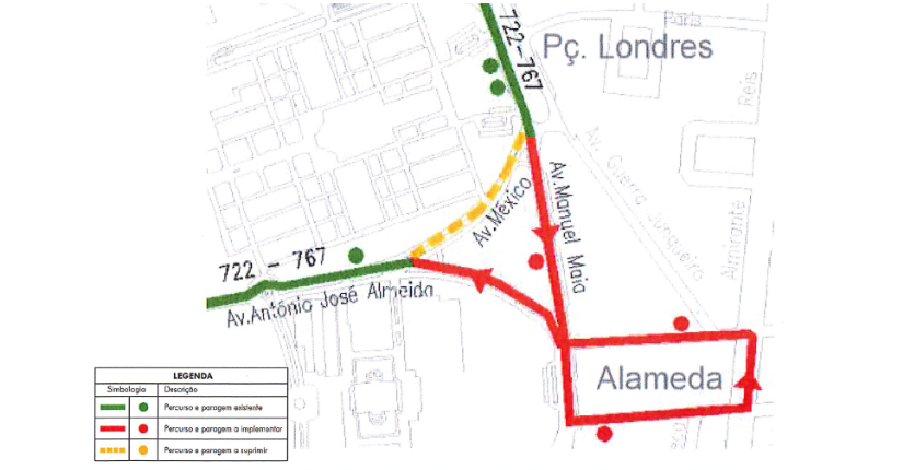 767 e 722 | Sentido Av. António José Almeida