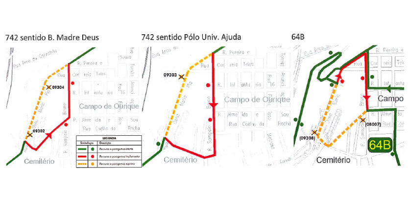 No dia 25 de maio de 2025 (domingo), entre as 8h e as 18h, as carreiras 742 e 64B terão as seguintes alterações no percurso:
