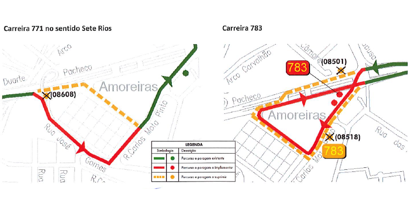 Entre o dia 26 de maio de 2025 (2.ª feira), às 8h e o dia 30 de maio de 2025 (6.ª feira), às 18h, as carreiras 771 e 2783 terão as seguintes alterações no percurso: