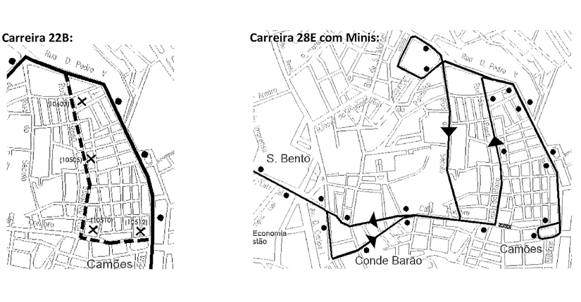 No dia 17 de julho (dom), entre as 00h30 e as 09h30, a 22B e 28E sofrem alterações de serviço.