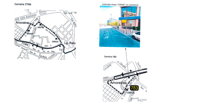783 - inverte na Av. Eng. Duarte Pacheco, efetuando terminal no início do corredor BUS junto ao C. C. Amoreiras.