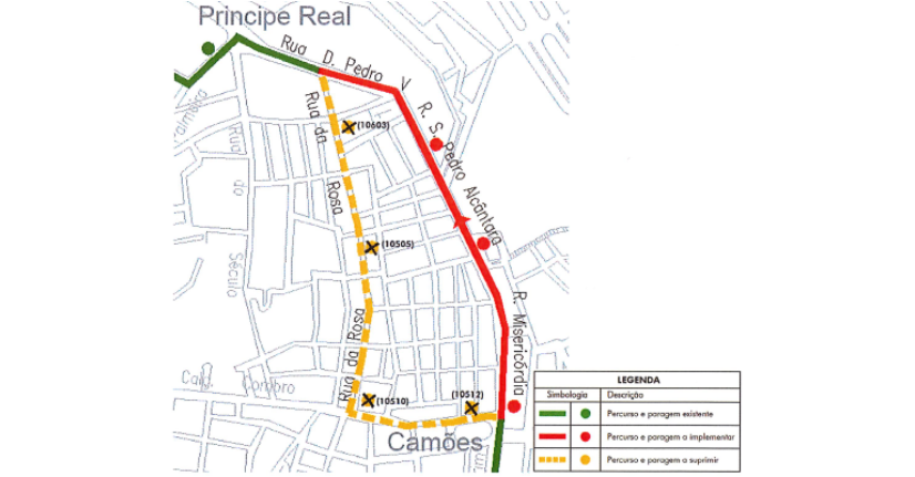 - R. Dom Pedro V, onde retoma o seu percurso.