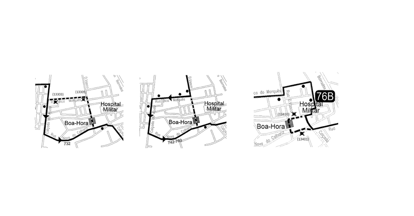 76B | a partir do Lg. Boa-Hora à Ajuda via Cç. Boa-Hora e R. Aliança Operária onde retoma o seu percurso.