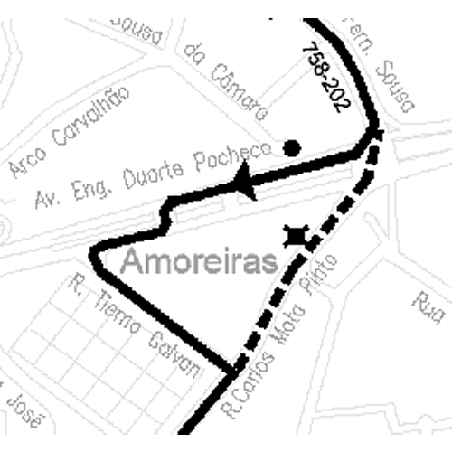Neste período, as carreiras 758 e 202 sentido Rato circulam via Av. Cons. Fernando Sousa, Av. Eng. Duarte Pacheco, R. Tierno Galvan e R. Carlos Alberto Mota Pinto onde retomam os seus percursos.