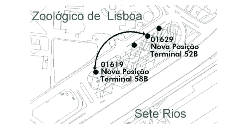 A partir de 3 de outubro (2ªf), haverá uma troca entre o local dos terminais das carreiras 52B e 58B, em Sete Rios.