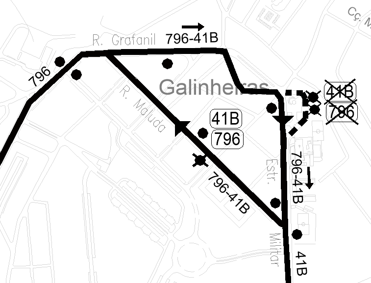 717 | Circula, em ambos sentidos, via Estr. Militar, R. Hermínio P. Inácio e Campo Amoreiras.