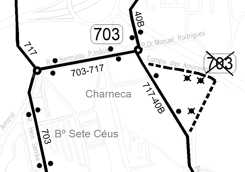 703 | Circula, em ambos os sentidos, via R. Hein Semke, R. João Amaral, R. Hermínio P. Inácio. Efetua terminal na paragem “06010 Qta. Pailepa”.