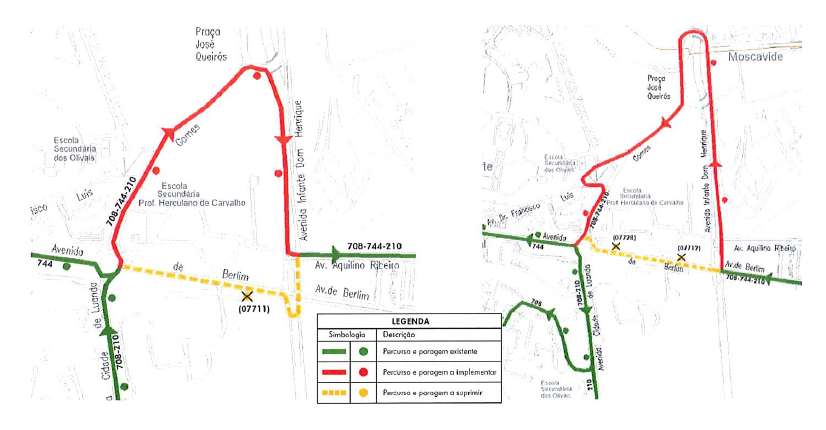 A partir do dia 16 de outubro de 2024 (4.ª feira), ao final da tarde, as carreiras 708, 744 e 210, têm as seguintes alterações:
