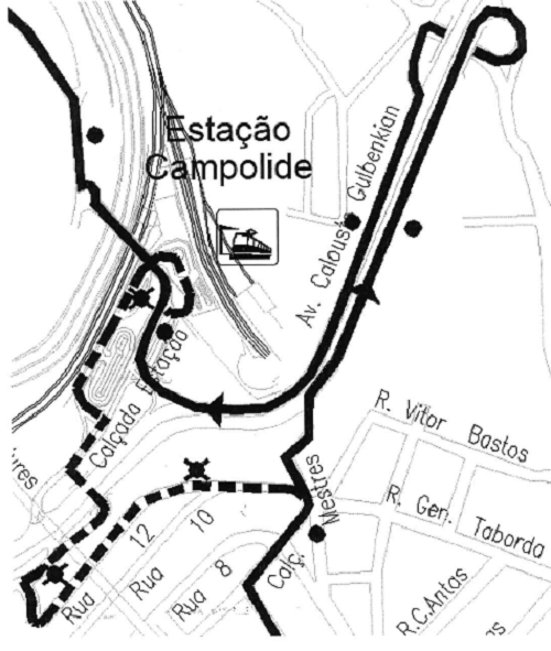 Na Calçada da Estação efetua paragem provisória e retoma o seu percurso.