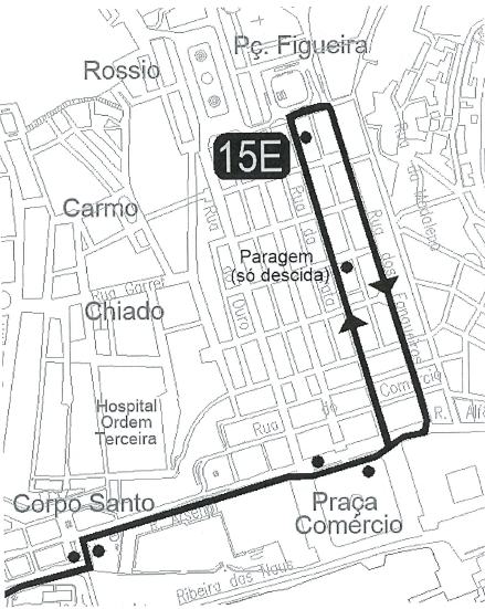 - No sentido Pç. Figueira, a partir da Pç. Comércio segue: