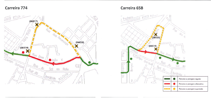 No dia 18 de novembro (sábado), entre as 9h e as 13h, as carreiras 774 e 65B circulam: