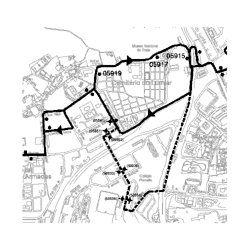 - sentido B.º Sta. Cruz – R. Prof. Manuel Valadares, via alternativa à Estr. Paço Lumiar, R. Fernando Mello Moser e Az. Poço de Baixo, onde retoma o seu percurso;