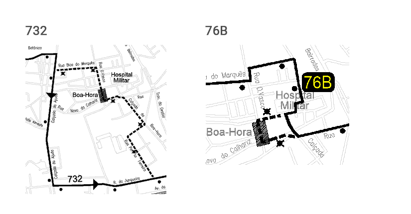- 732 destino Hosp. Sta. Maria, a partir da R. Jardim Botânico via Cç. Ajuda e R. Junqueira onde retoma o seu percurso;