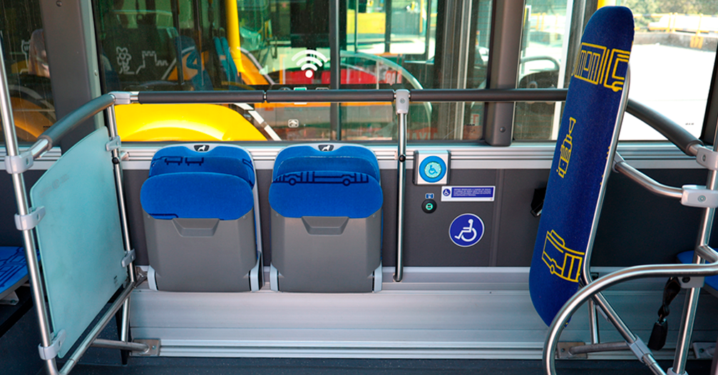 - Sistemas de fixação e bloqueio de cadeira de rodas durante os percursos